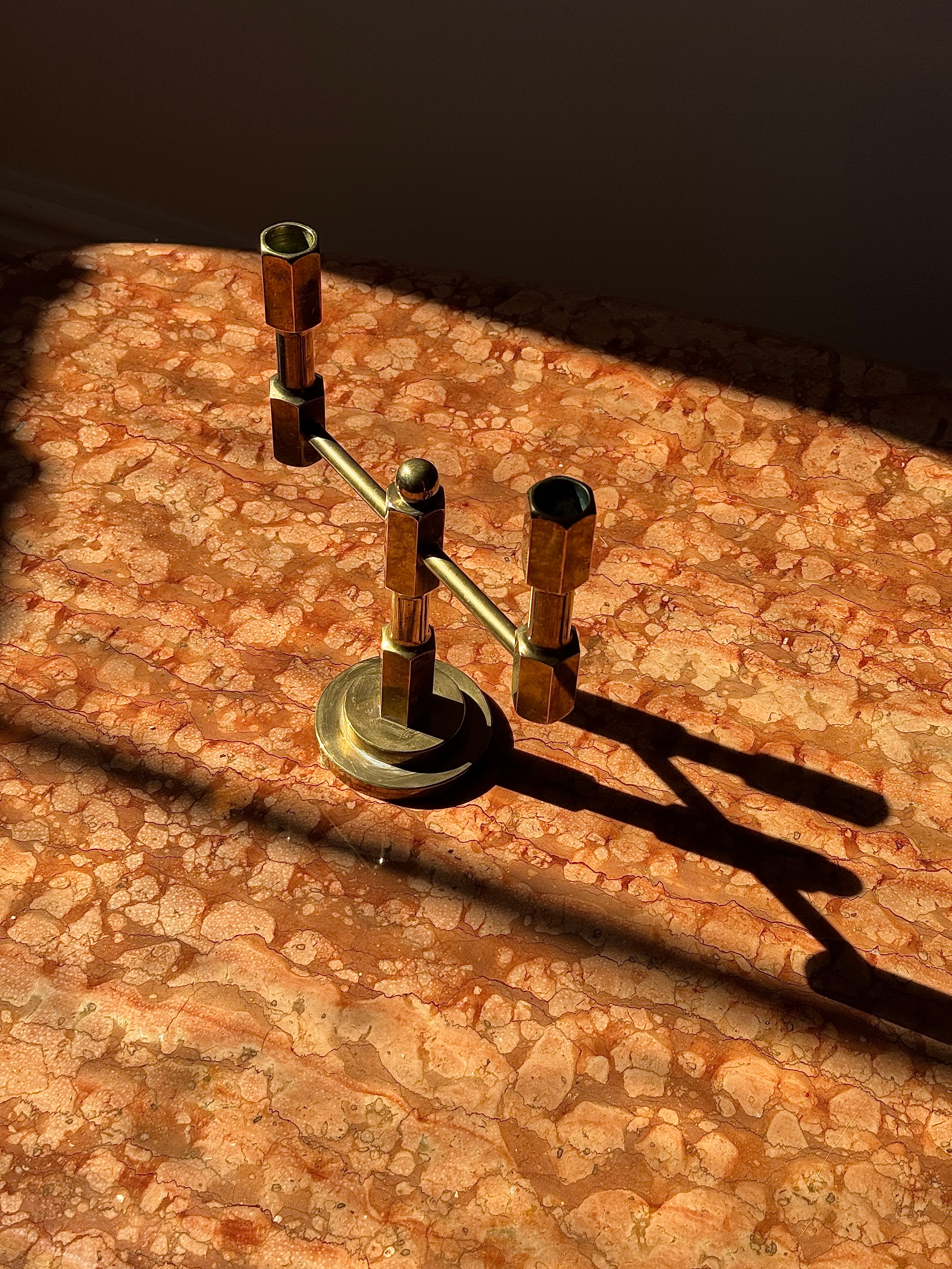 Pair of Swedish Brass Crown Candleholders with Hammered Bases, circa 1950