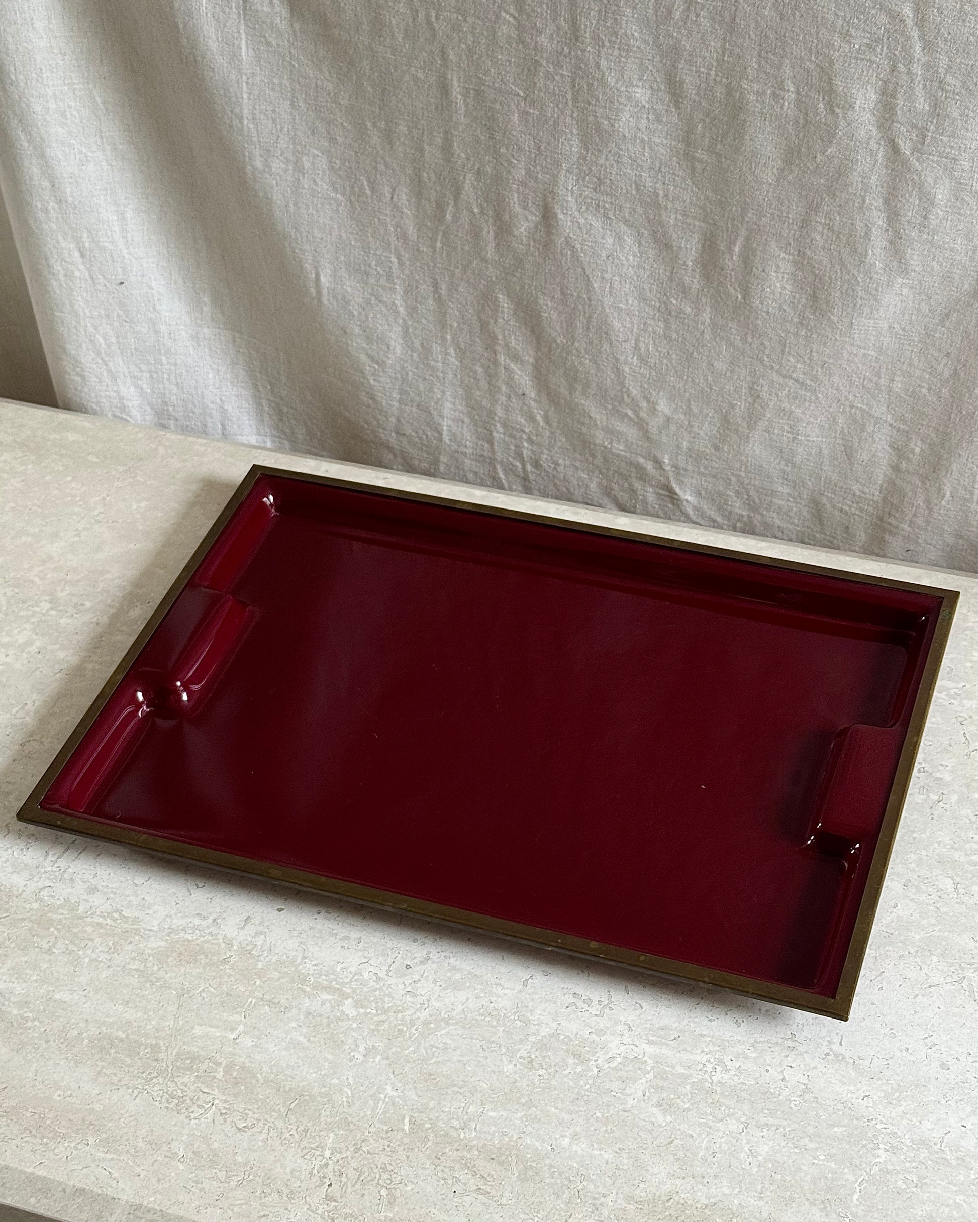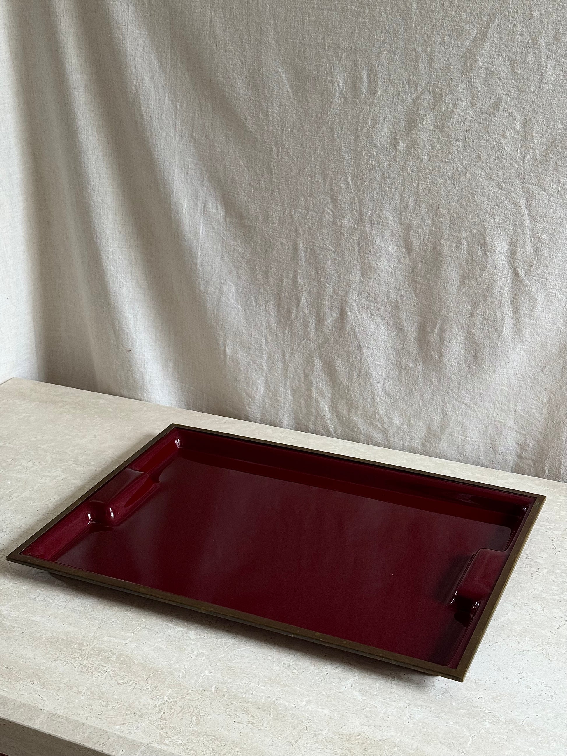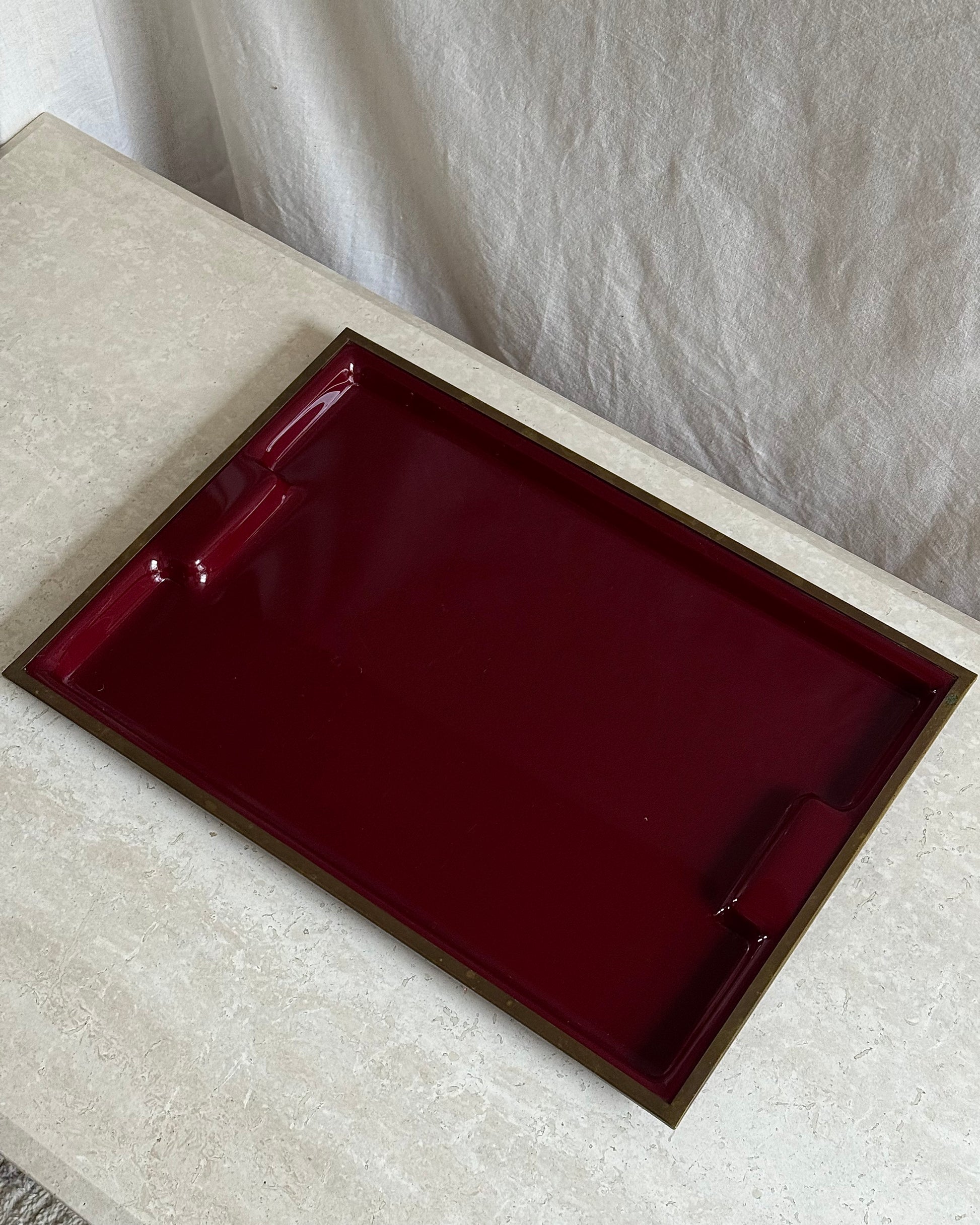 1970’s Large Italian Oxblood Acrylic & Brass Tray