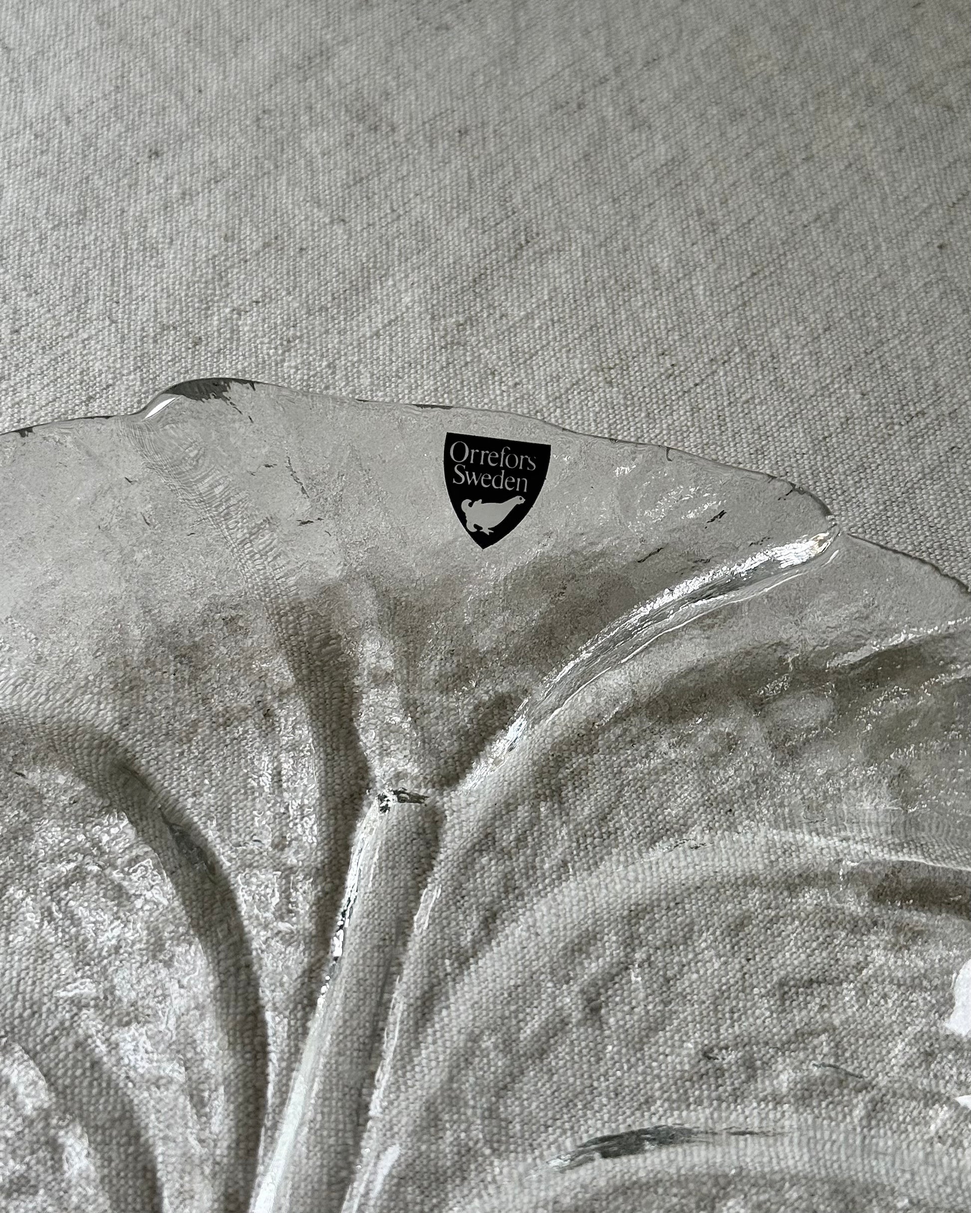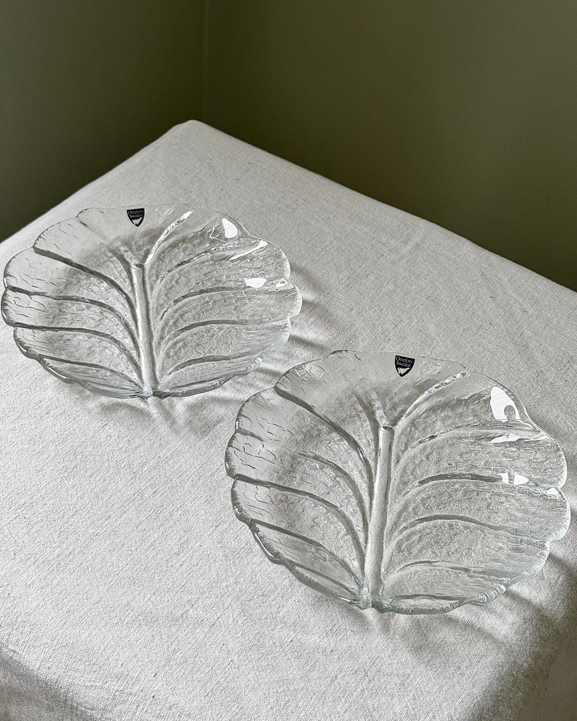 Mid-century Orrefors Sweden Glass Leaf Dishes