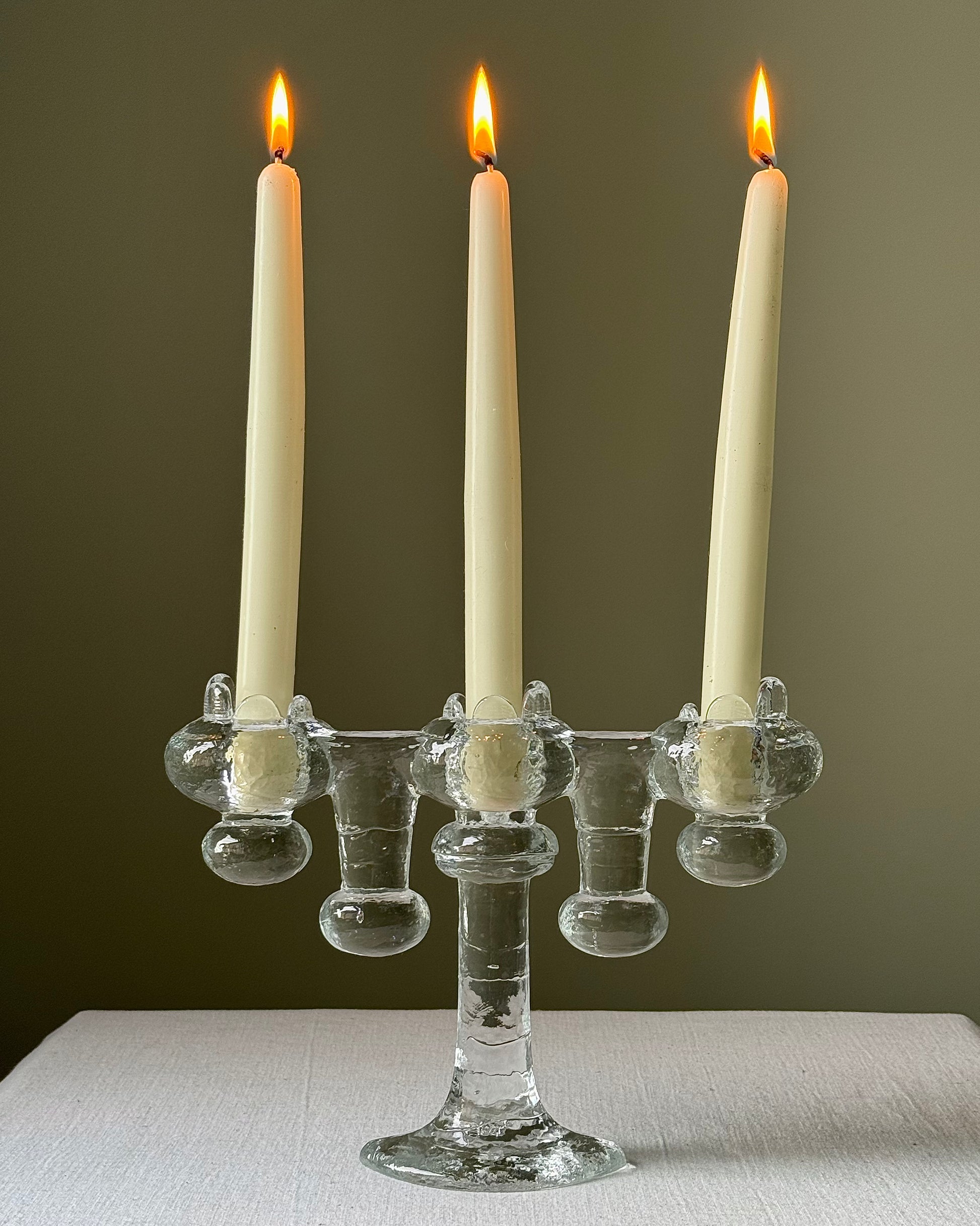 Swedish Glass Candelabra by Pukeberg Glasbruk
